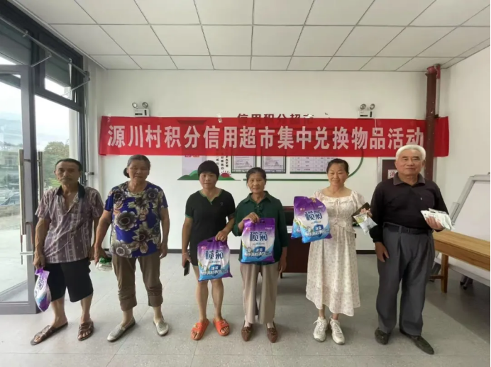 (图为源川村开展积分信用超市集中兑换物品活动)